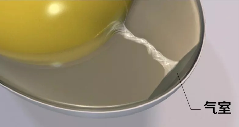 剛排出體外的雞蛋還差最后一個關鍵部位,氣室。蛋雞泄殖腔溫度41.5℃左右,環(huán)境溫度18-30℃之間,雞蛋在外部環(huán)境中遇冷收縮,形成氣室。